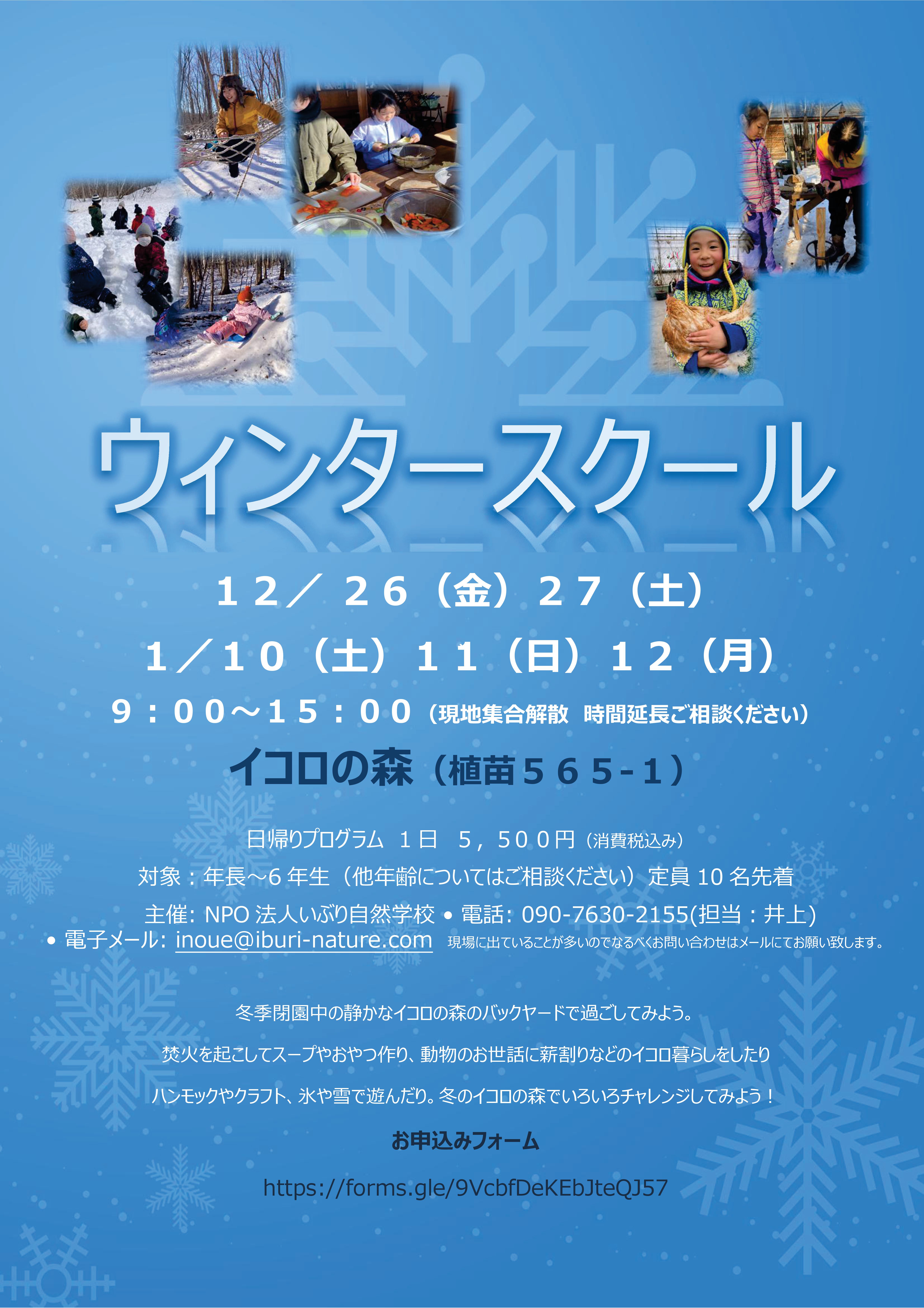 焚火を起こしてスープやおやつ作り、動物のお世話に薪割りなどのイコロ暮らしをしたり ハンモックやクラフト、氷や雪で遊んだり。冬のイコロの森でいろいろチャレンジしてみよう!