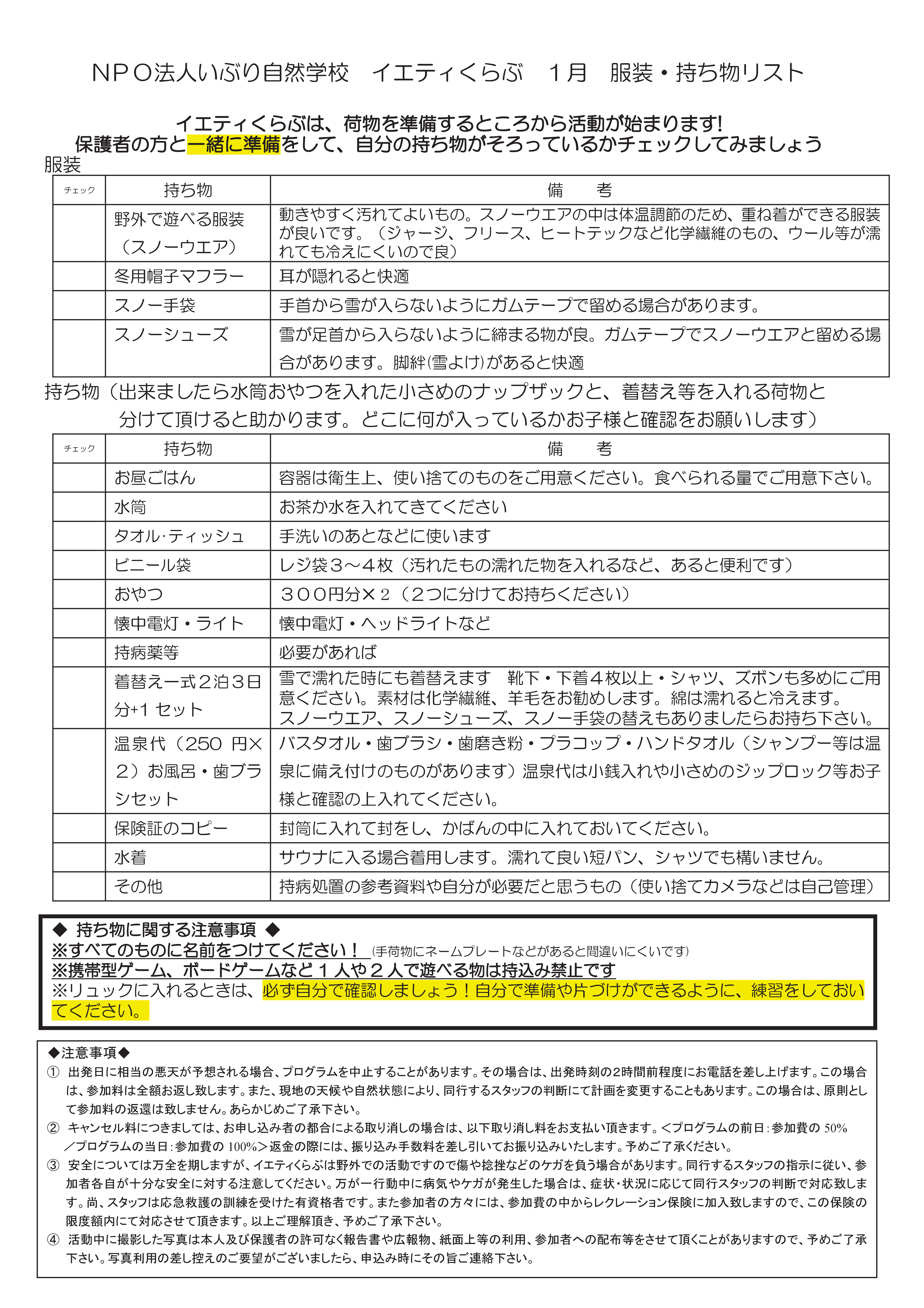 今回はまるやま校、沼田町のお友だちと一緒に活動します。お風呂は温泉。夜はクラフト等で楽しもう。
